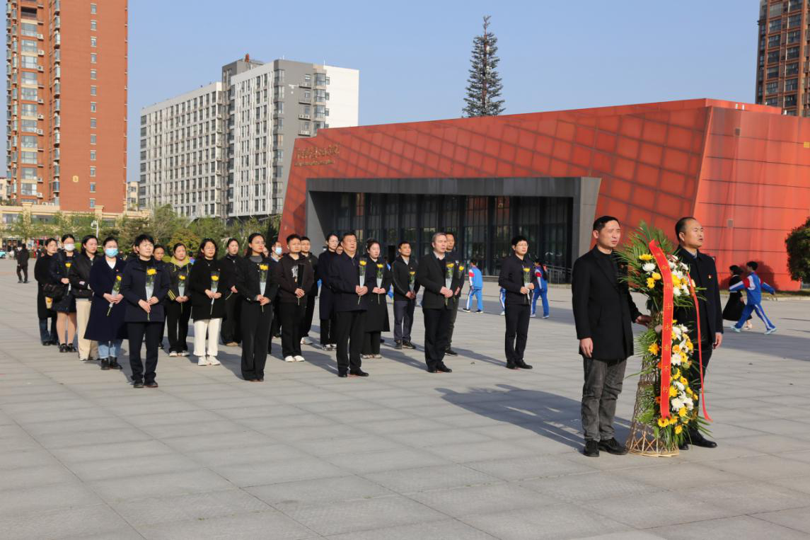 鲜花敬献英烈,哀思祭奠忠魂。当日8时30分,全体党员干部在庄严肃穆的烈士纪念碑前静立默哀,敬献花篮,深切缅怀革命先烈的丰功伟绩,表达对革命先烈的深切悼念。默哀仪式完成后,全体人员向革命烈士献花,缓步绕行纪念碑,瞻仰烈士墓,每走一步都默默地对革命烈士表达深深敬意,铭记革命先烈的不朽功绩。