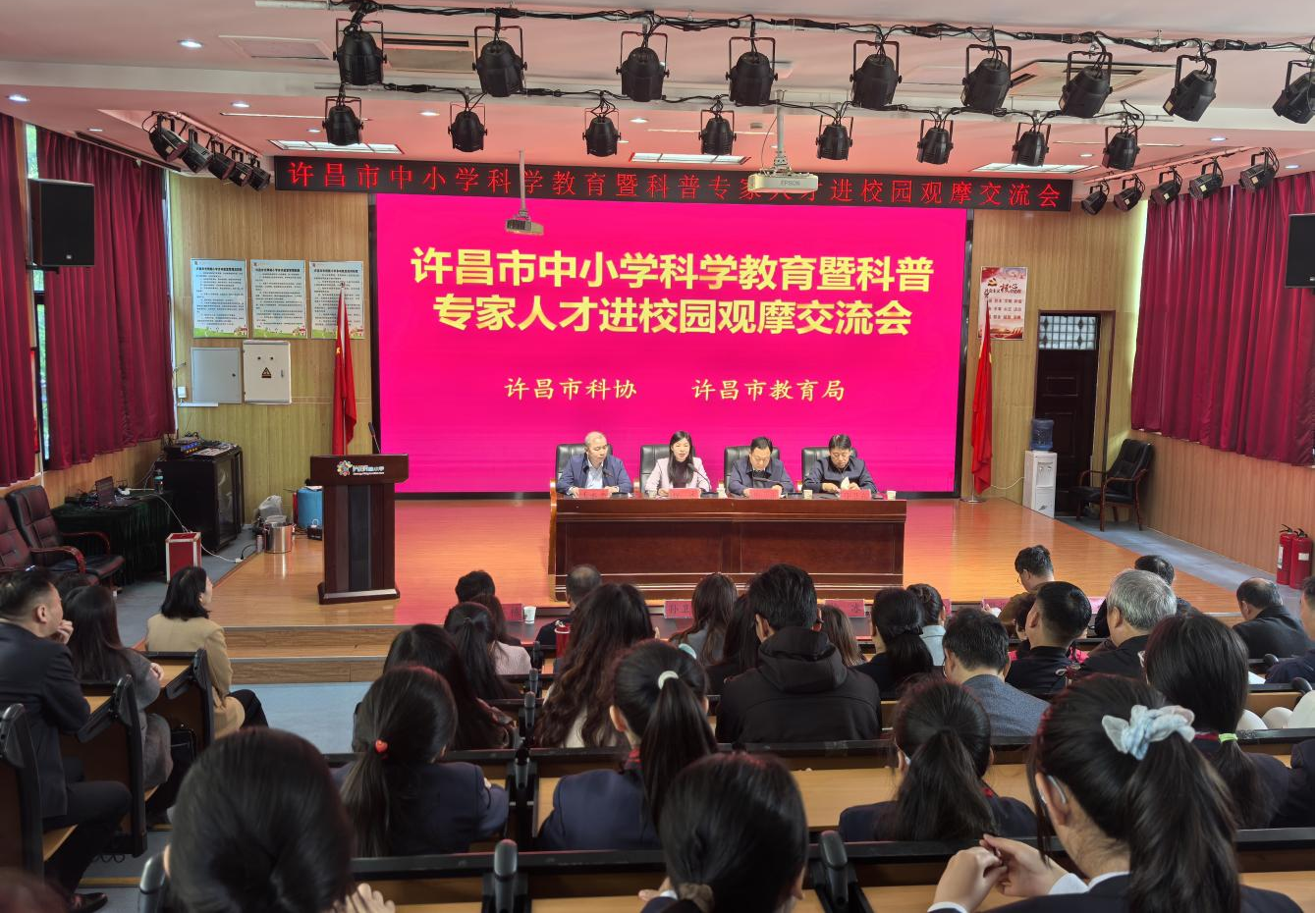 4月22日上午,2026年许昌市中小学科学教育暨科普专家人才进校园观摩交流会在许昌市光明路学校成功举行。本次活动旨在深入贯彻各级关于加强中小学科学教育的决策部署,全面推广魏都区先进经验,推动科普专家人才进校园工作走深走实,助力中小学科学教育提质增效。市科协主席徐冰,市教育局党组成员、副局长井卫东,魏都区人大党组副书记、副主任、区委政法委书记孙卫东出席活动。市科协党组成员、副主席王永杰主持会议。