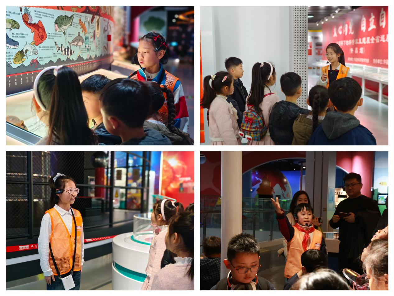 2月11日—14日集中服务期内,小小讲解员们怀揣着饱满的热情正式上岗,从容大方开启志愿讲解服务。在“众心向党 自立自强——党领导下的科学家”主题临时展厅,他们满怀敬意地讲述科学家们胸怀祖国、勇攀高峰的感人故事;在常设展厅,他们配合展项演示,讲解了“为什么弯曲面上的小球比直线上的小球下降的快”“人类是如何进化的”“卫星如何运行”等科学知识。讲解过程中,小讲解员们时而互动提问,时而耐心解答,认真负责、全程投入,赢得了现场观众的阵阵掌声。