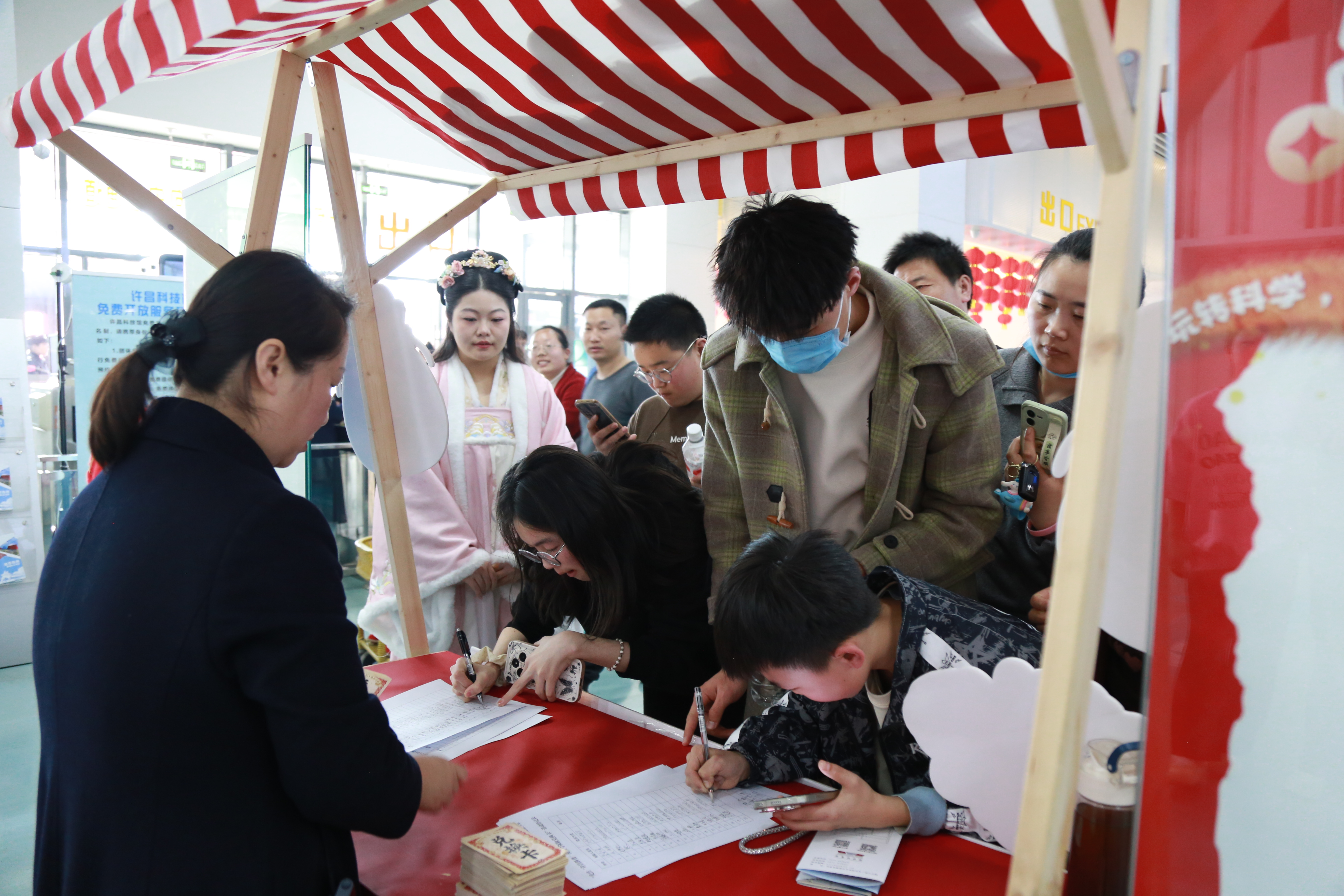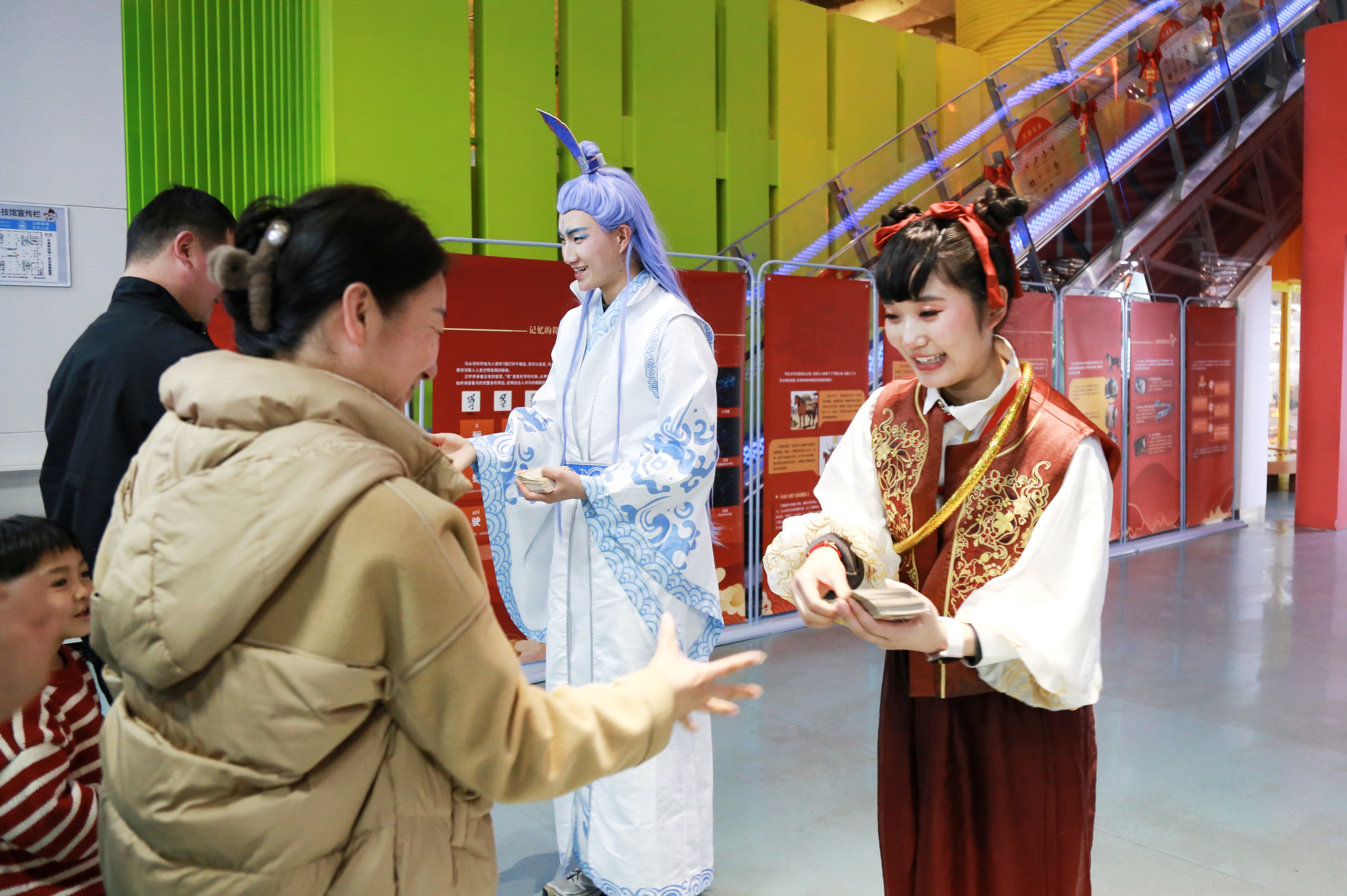 NPC天团再掀热潮,趣味闯关持续升温。曹操智趣答题、李清照词赋迎春、狐尼克反向指令考验等环节妙趣横生。市民们踊跃参与、尽情体验,一张张兑换卡定格精彩瞬间。现场欢声笑语不断,大家在古今对话与趣味博弈中,沉浸式探索科技奥秘。