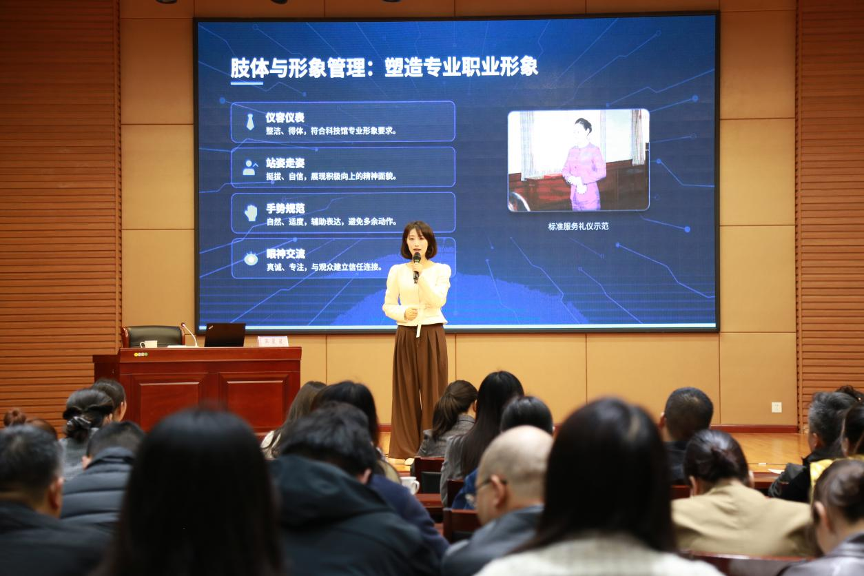 吴晨晨老师聚焦科技辅导员角色认知、科普讲解核心原则,以及语言表达与肢体形象管理两大主题,结合“电磁感应”等展品案例,精心分享三步法讲解策略,帮助辅导员梳理讲解思路、通俗传递展品知识;同时现场示范规范讲解仪态,引导大家实现语言技巧与肢体形象的有机融合。