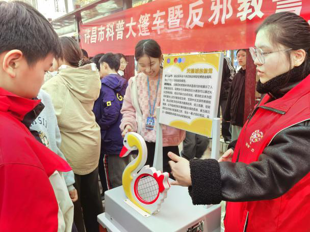 为助力青少年科学素养提升,筑牢校园反邪教思想防线,10月30日至31日,许昌市科协组织党员志愿服务队先后走进禹州市古城镇明德学校和鄢陵县马坊镇第一初级中学,开展“科普大篷车”巡展暨反邪教警示教育科普宣传活动。