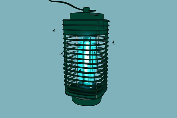 大多数昆虫的视网膜对长波紫外线非常敏感,如果长波紫外线的波长范围正好处于315至400纳米之间,就能吸引大量的蚊虫。灭蚊灯正是试图利用这一点,通过释放光束和其他化学物质引诱蚊虫。理想情况下,当蚊虫看到灭蚊灯发出的灯光后,会不断向光源靠近,随后会被灭蚊灯的扇叶气流吸入灯内,并且灯内的负压装置会释放高压电流,从而将蚊虫消灭。