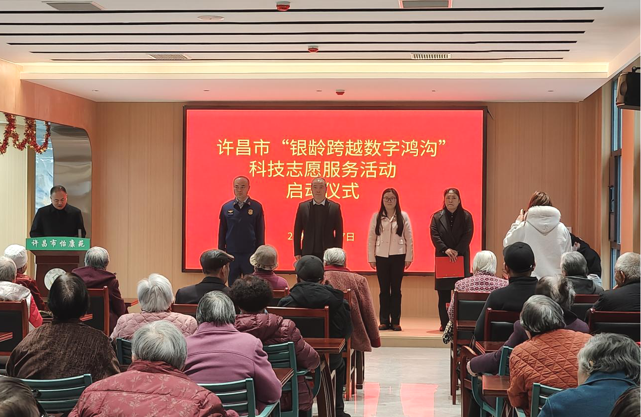 为深入贯彻落实《中华人民共和国科学技术普及法》,积极应对人口老龄化,帮助老年人跨越“数字鸿沟”、融入智慧社会,3月17日上午,由许昌市科协联合市消防救援局、中国联通许昌分公司、中国银行许昌分行共同主办的2026年“银龄跨越数字鸿沟”科技志愿服务活动在鄢陵县怡康苑护理院正式启动。市科协党组成员、副主席王永杰出席活动并宣布活动启动。各相关单位负责同志,以及来自医疗、通信、金融等领域的科技志愿者代表共同参加活动。启动仪式由市科协普及部部长姜文学主持。