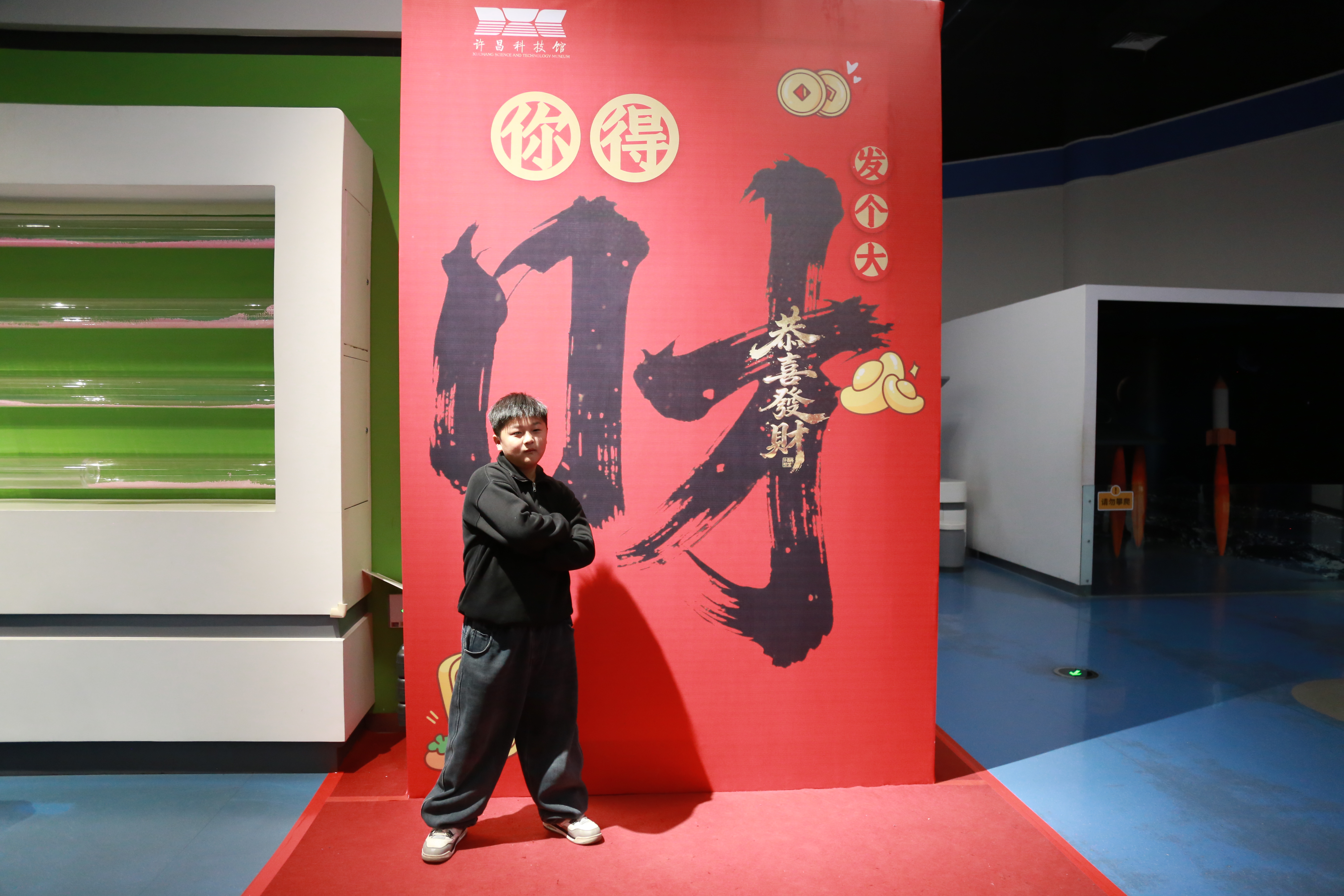 创意打卡点依旧稳居馆内“C位”,备受市民青睐。南门入口“敲响新春 福满家门”、馆内“许君以昌”“你得发个大财”等特色场景前,大家争相拍照留念,在光影交织中定格新春记忆,也记录下科技与非遗交融的温馨瞬间。