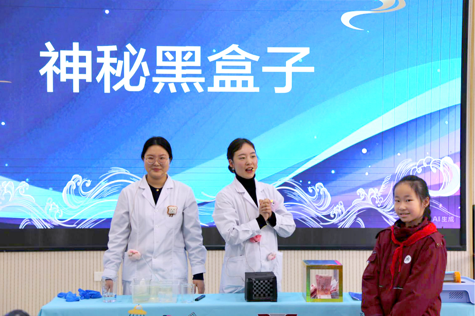 科学实验秀《隐身之谜》则将现场气氛推向高潮。烧杯瞬间“隐形”、物体凭空消失、人体光影悄然隐去……科技辅导员用一系列不可思议的光学实验,将抽象的原理化作直观的视觉冲击。孩子们在惊呼与互动中,亲手触摸“隐身”的奥秘,感受光影世界的神奇魅力。