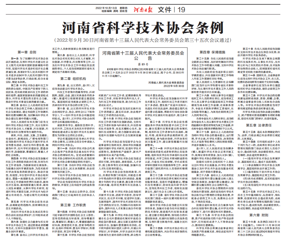 《河南省科学技术协会条例》全文发布