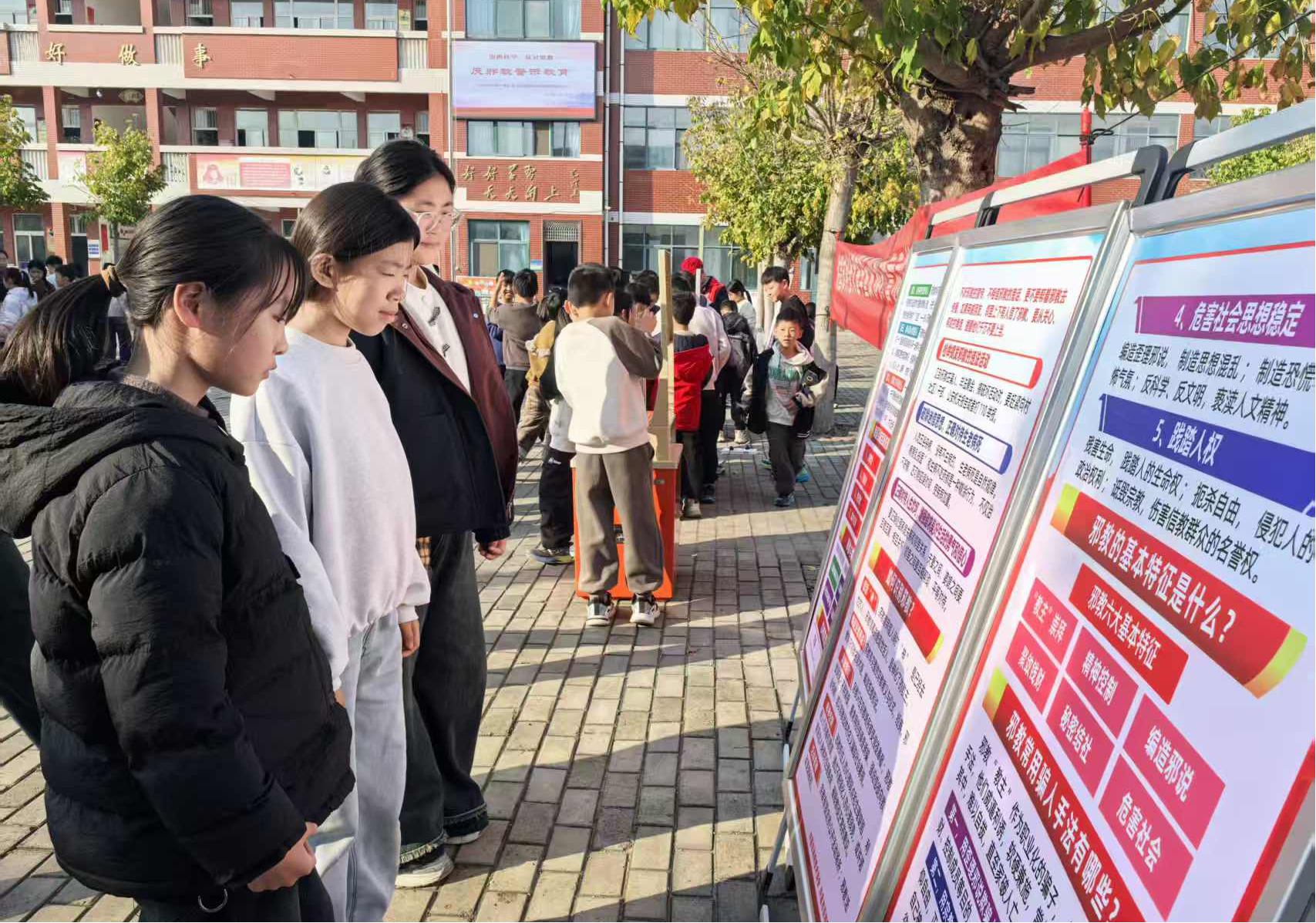 反邪教警示教育展板区同样吸引众多学生驻足学习。展板以图文结合的方式,清晰揭示邪教的本质特征与现实危害,引导学生树立正确的价值观念,增强识别、抵制邪教的能力,筑牢校园思想防护网。