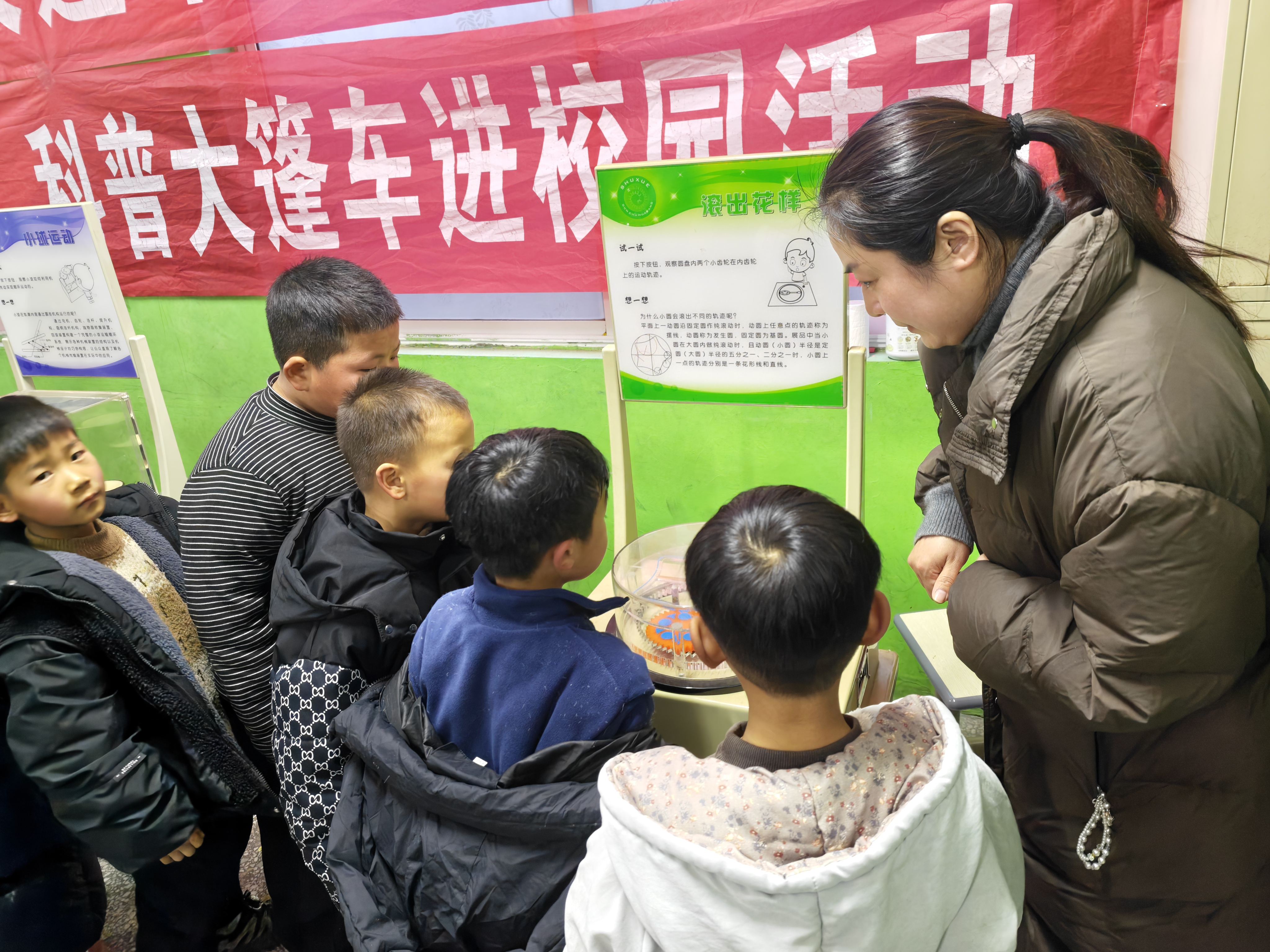 沉浸式体验:与科学“玩”在一起。在“天鹅绒触觉”展台前,同学们闭上眼睛轻揉钢丝网,指尖传来的竟是天鹅绒般的柔软触感,这奇妙的感觉令大家连连称奇。“动画”利用视觉暂留让静止图片连贯运动,“小球运动”装置展现机械传动的精妙,“滚出花样”用摆线轨迹描绘出数学的浪漫曲线......这些展品没有复杂的公式,只有生动的互动和有趣的现象。同学们时而屏息观察,时而兴奋讨论,在欢声笑语中感受科学的神奇魅力。