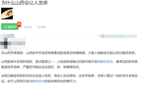 很多人都说山药粘液致痒是由于其中的皂苷或皂角素造成的,但是目前并没有文献报道山药致痒的罪魁祸首是以上物质。